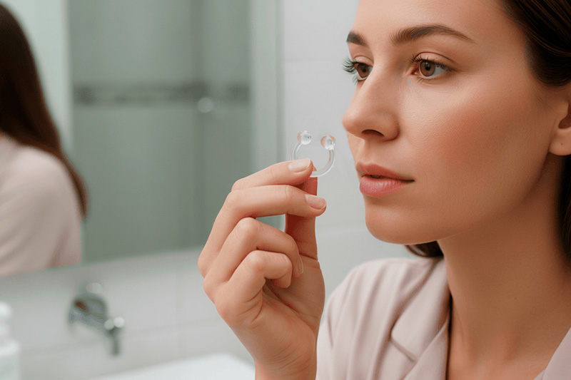 Slip the soft ring gently into your nostrils for a secure, comfortable fit.